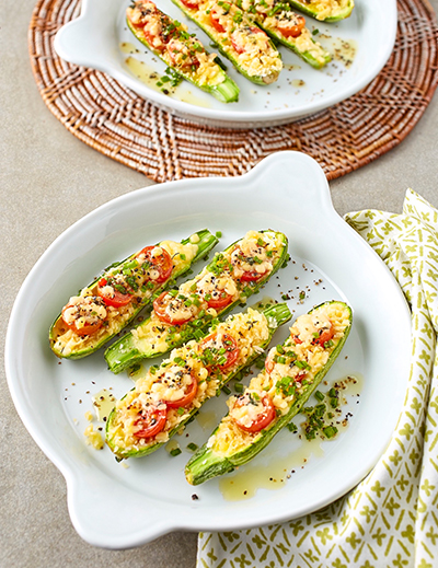Crisp, tender zucchini tossed with olive oil and herbs and topped with a mix of yummy cheeses. Also low in carbs!